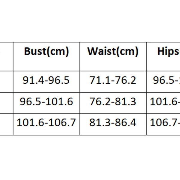 | UK Size | Bust (cm) | Waist (cm) | Hips (cm) |